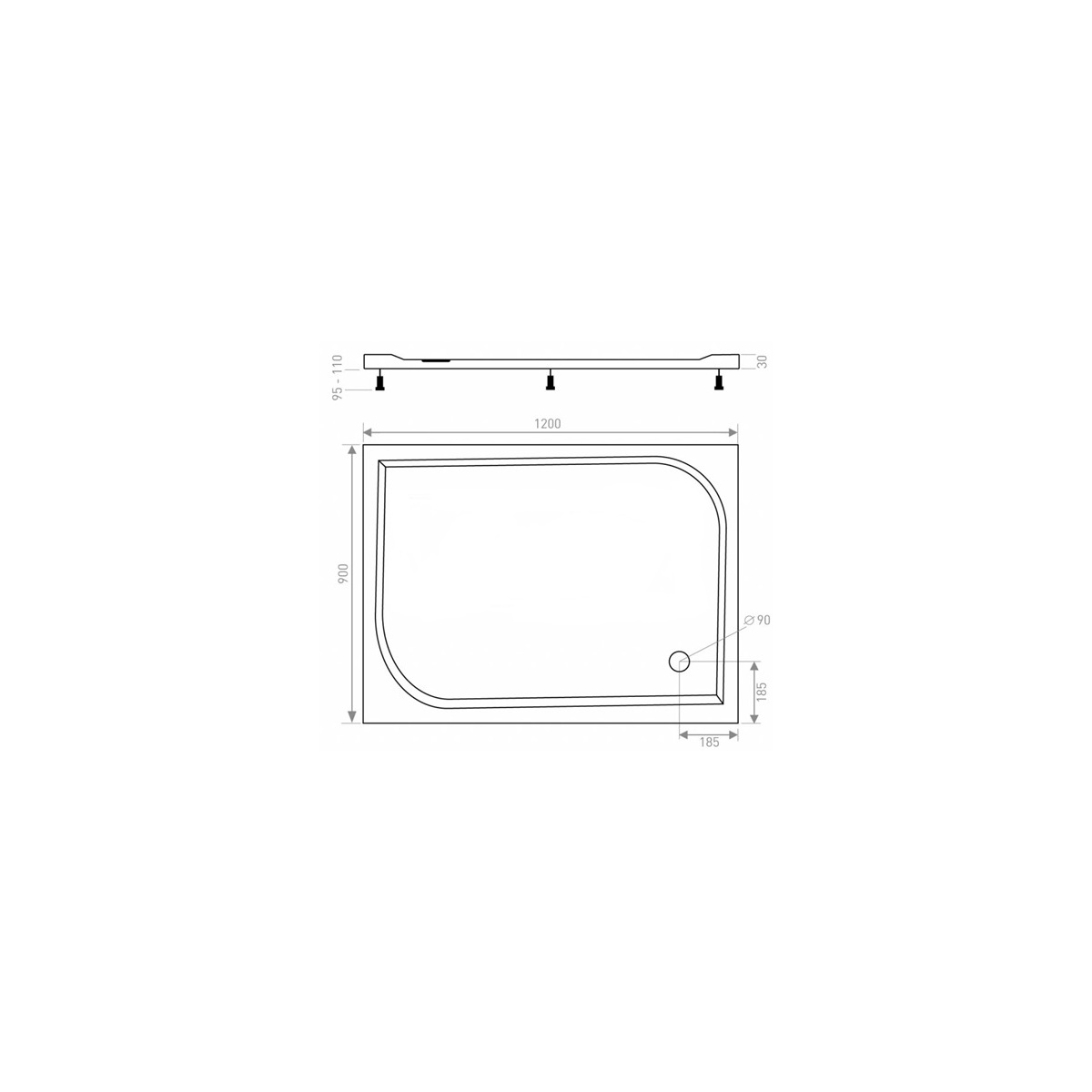 - Rozměr vaničky 900 x 1200 mm 6I4U000101