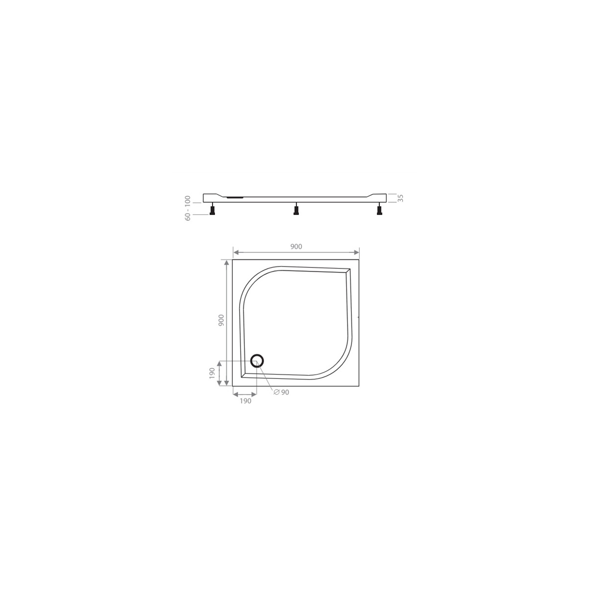 - Rozměr vaničky 900 x 900 mm 6I4U000101