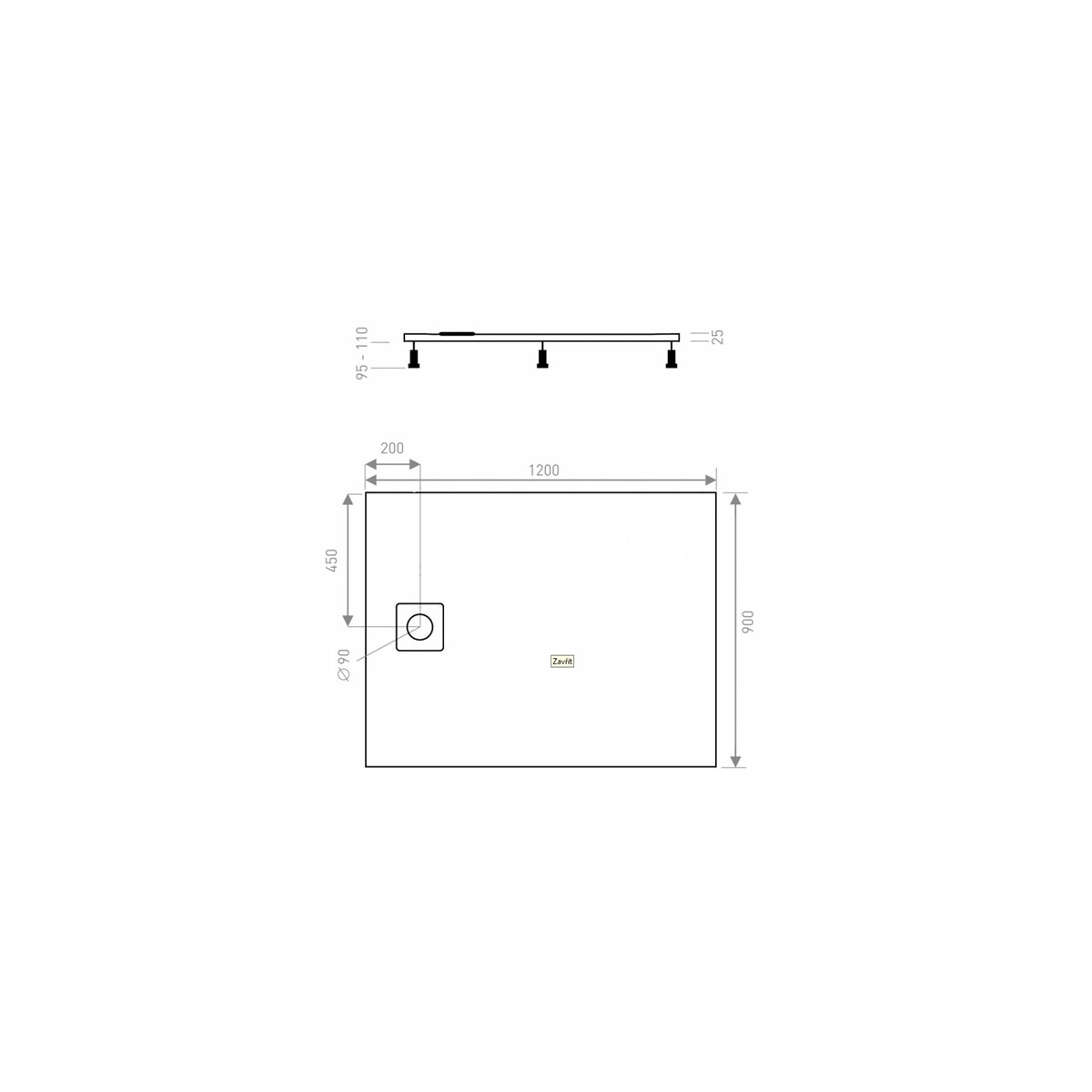 - Rozměr vaničky 900 x 1200 mm 6I4U000101