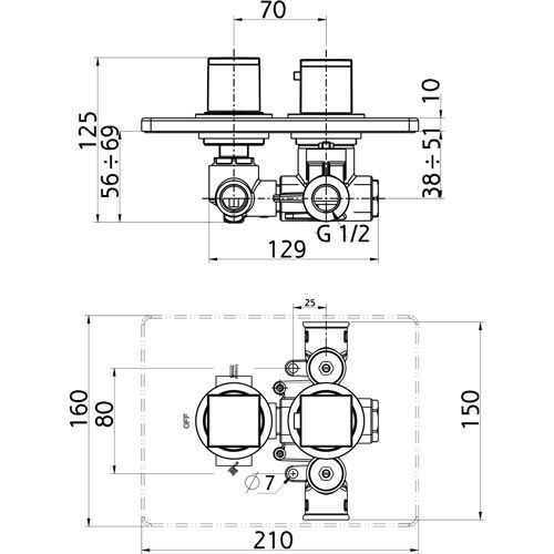 Sprchová/vanová baterie Aquasave, chrom, podomítková, termostatická, bez příslušenství, Novaservis 2850R,0