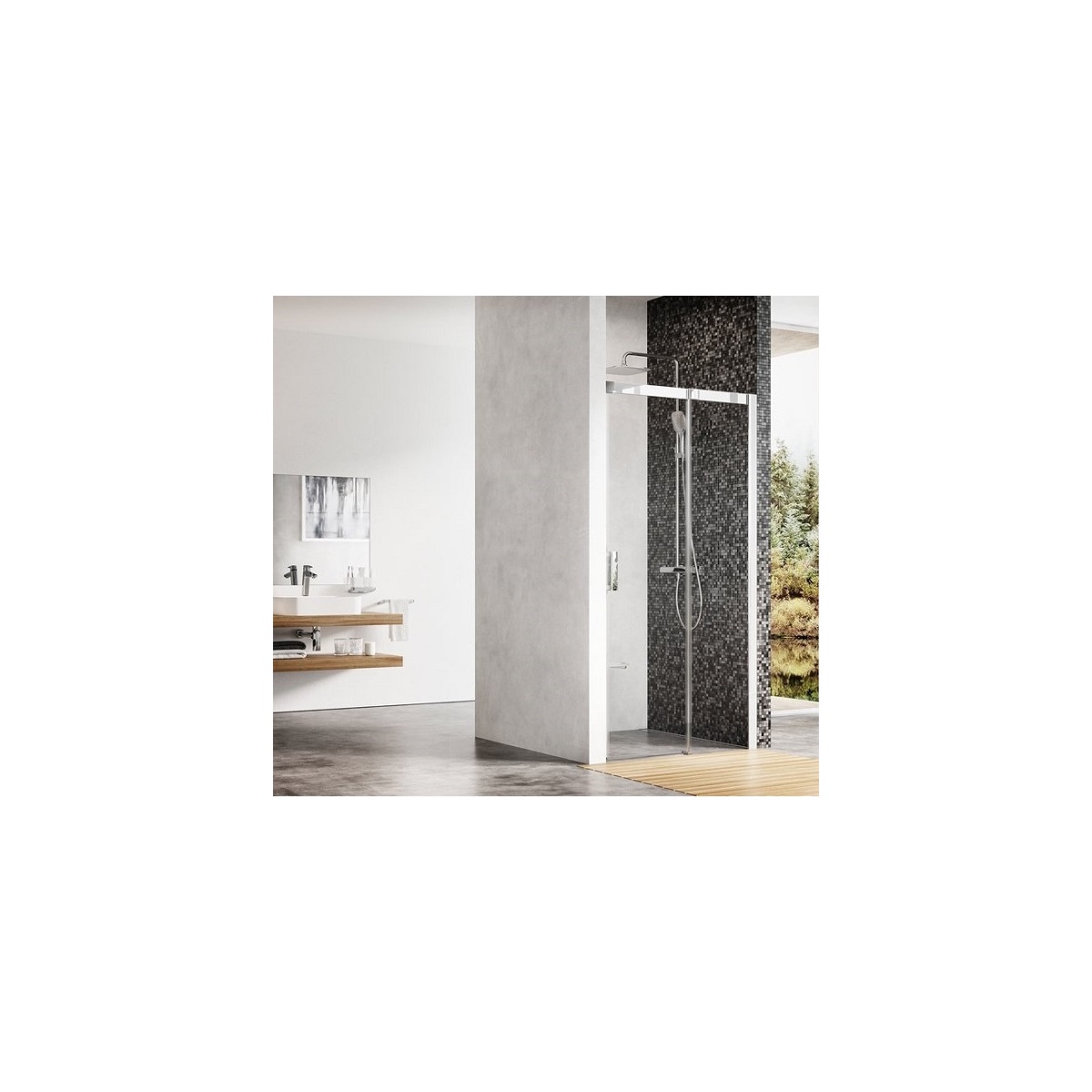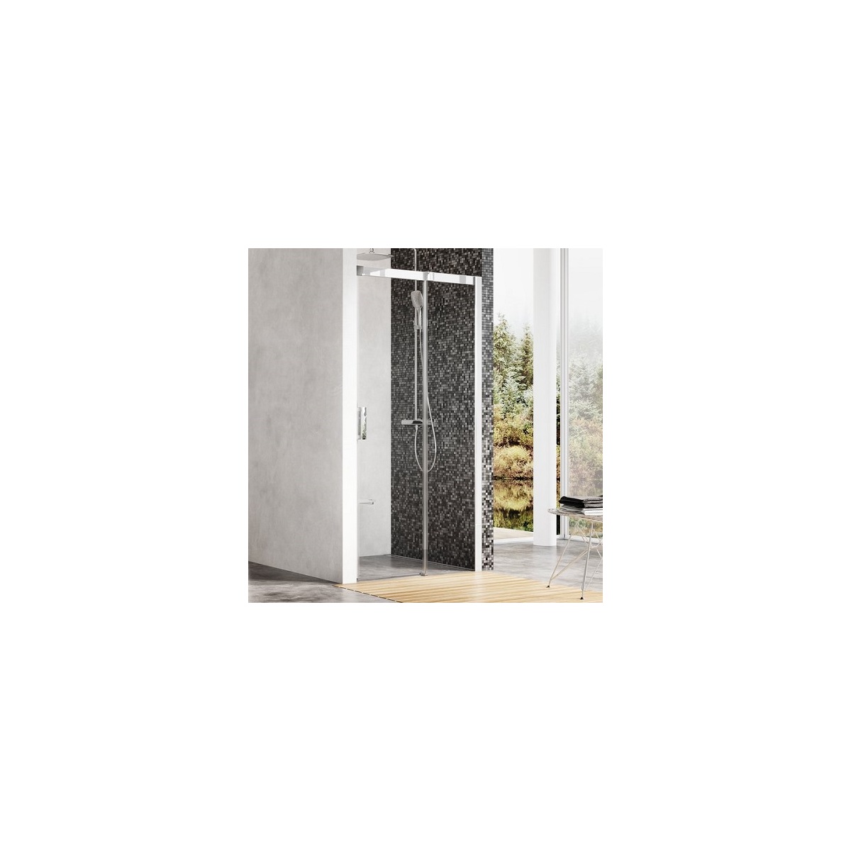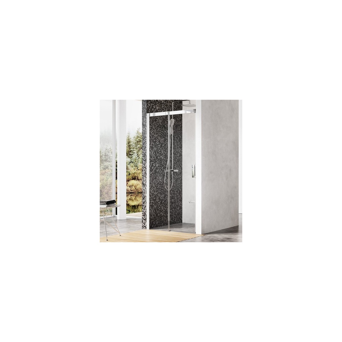 Luxusní posuvné dveře pro vaši niku. Utěsní prostor až 120 cm široký a koupelně dodají styl založený na výrazné horní a boční liště s příložkou ve tvaru čtverce.