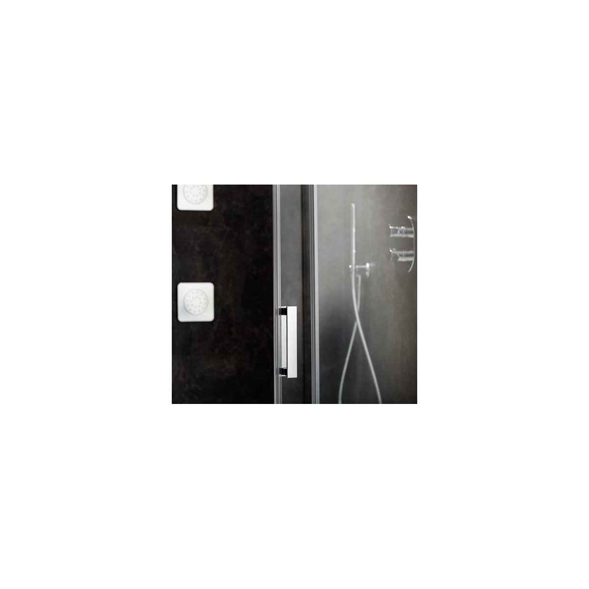 Posuvný systém dvoudílných dveří zajišťují kolečka o průměru 20 mm s bezúdržbovými nerezovými ložisky pohybujícími se v drážkách. Tento mechanismus brání zadrhávání a křížení posuvných dílů a zaručuje bezporuchový a tichý chod dveří. Díky posuvu neubírají prostor v koupelně, neobtěžují a neodkapává z nich voda na podlahu.