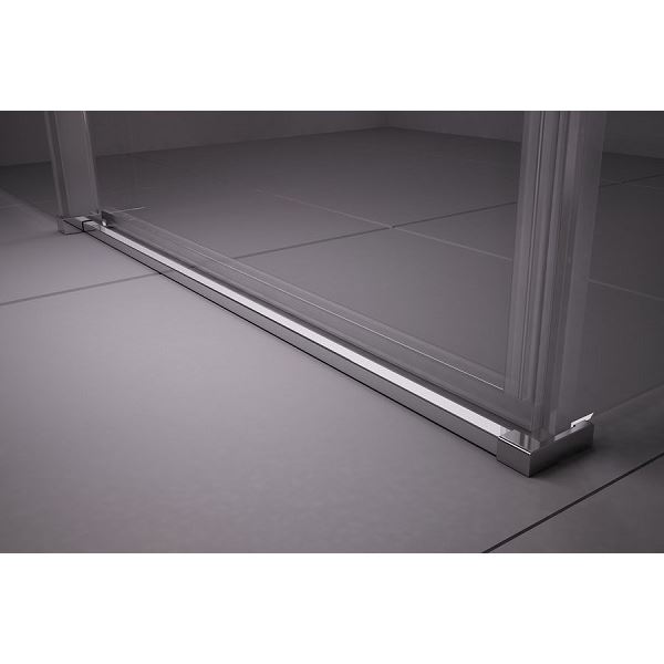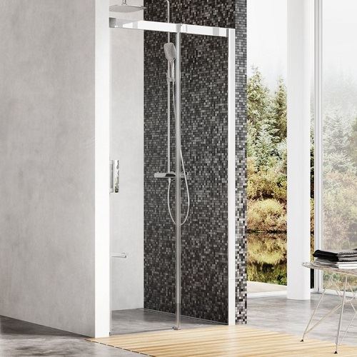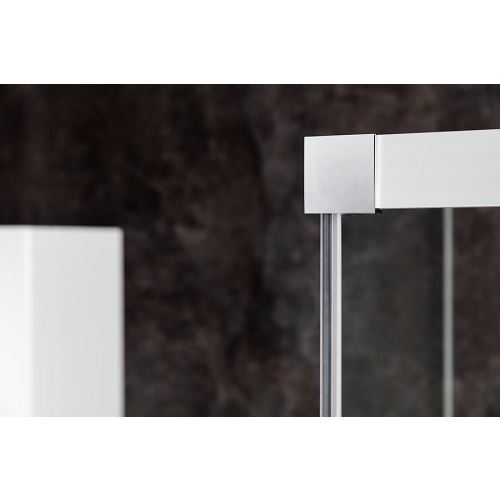 Luxusní posuvné dveře pro vaši niku. Utěsní prostor až 120 cm široký a koupelně dodají styl založený na výrazné horní a boční liště s příložkou ve tvaru čtverce.