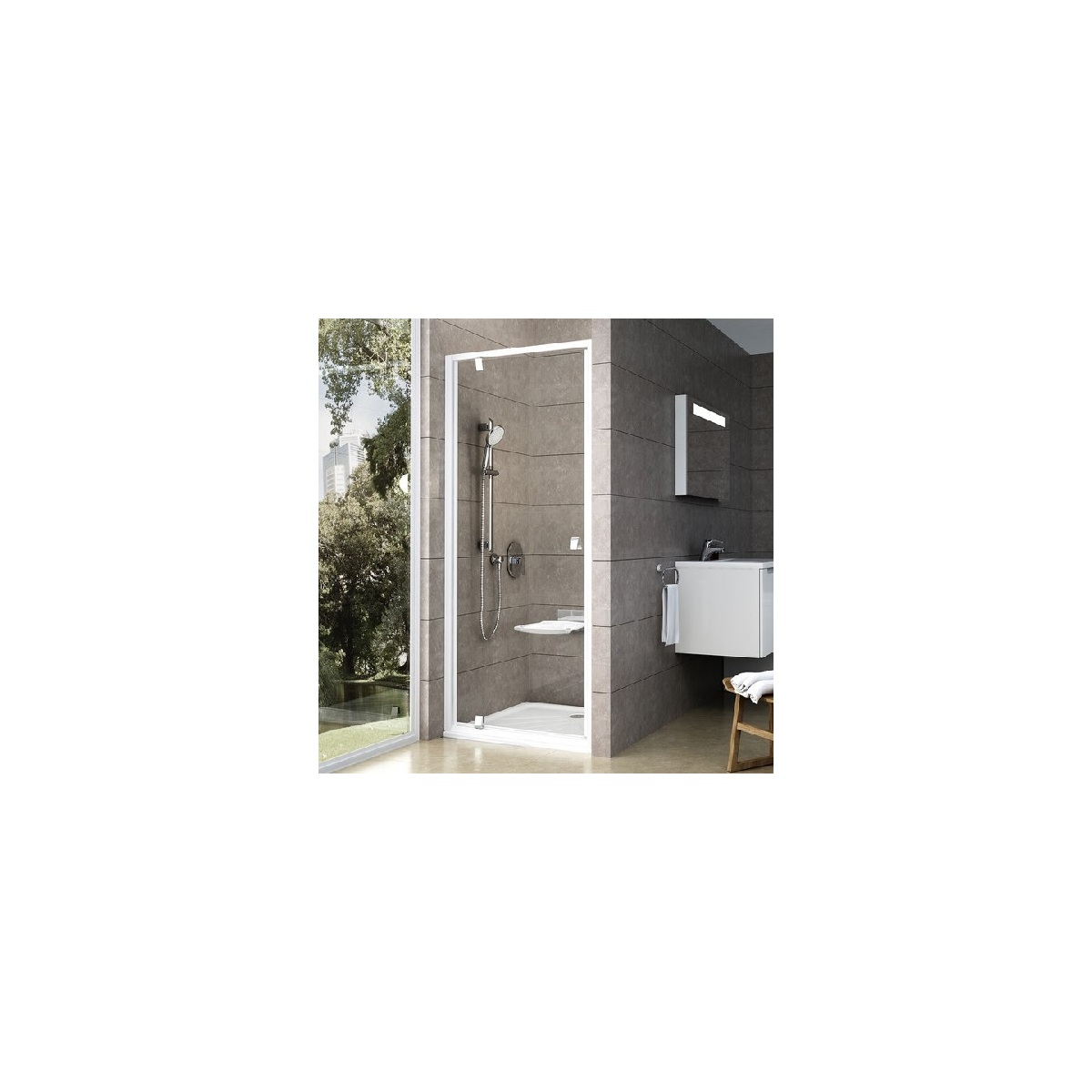 Elegantní a praktické řešení pro vytvoření sprchového prostoru v nice o šířce 80 - 90 cm. Geniálně jednoduché a takřka nezničitelné otevírání pomocí otočného čepu nevyžaduje žádnou údržbu zato nabízí dlouhodobě bezproblémový chod a v každé koupelně vypadá krásně.