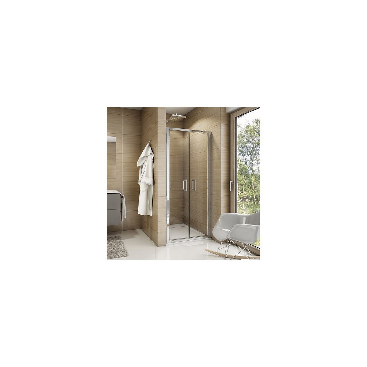 TOPP2 - 70 aluchrom+transparent - dvoukřídlé dveře - 5 mm bezpečnostní sklo, magnetické těsnění, otvírání ven i dovnitř, chromované plastové dílky a madlo i u bílého a eloxovaného rámu