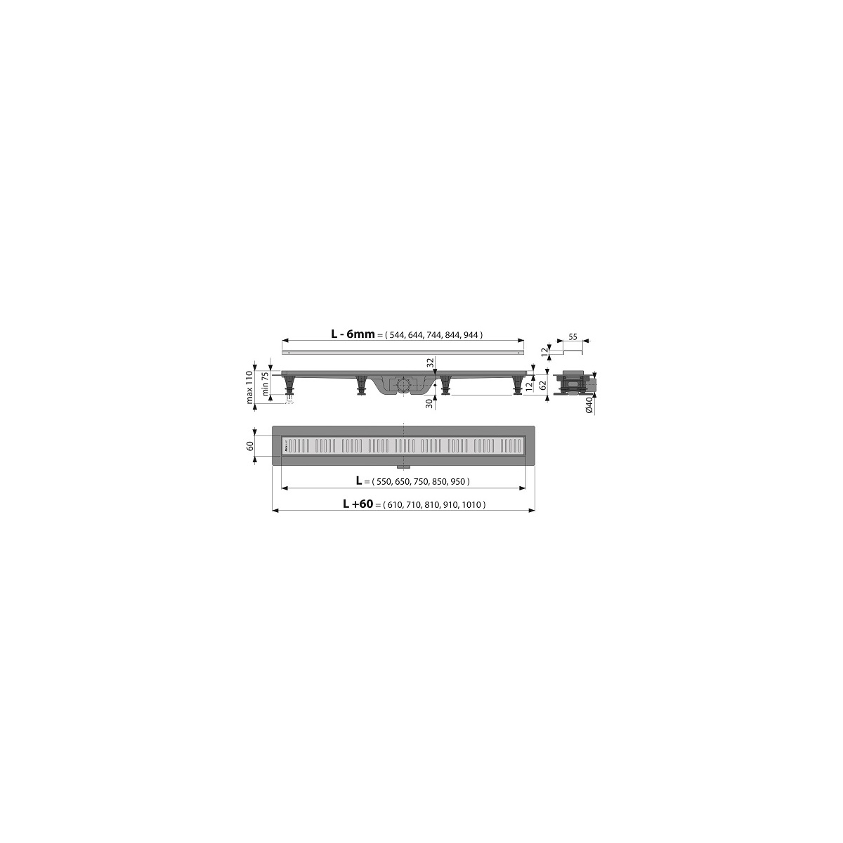 Základní model z řady plastových podlahových žlabů je pro svou nízkou stavební výšku 62 mm vhodný zejména pro rekonstrukce a jiné stavby, kde je problém s nedostatkem místa v podlaze. Součástí každého žlabu je kompletní souprava žlabu s roštem a výškově nastavitelných noh s kotvicími prvky a hydroizolační páskou.