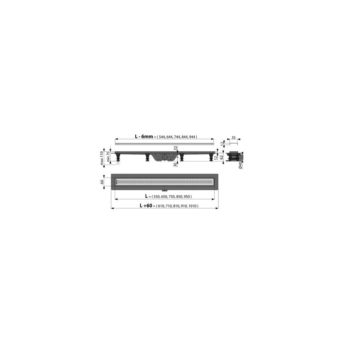 Sprchový odtokový žlab APZ9 SIMPLE 850 mm, Alcadrain