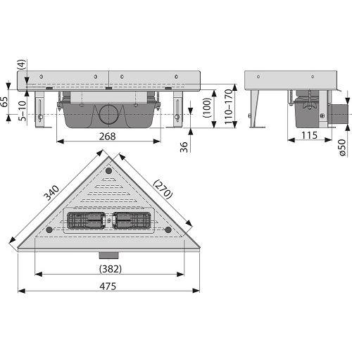 Sprchový odtokový žlab ARZ1 rohový, Alcadrain