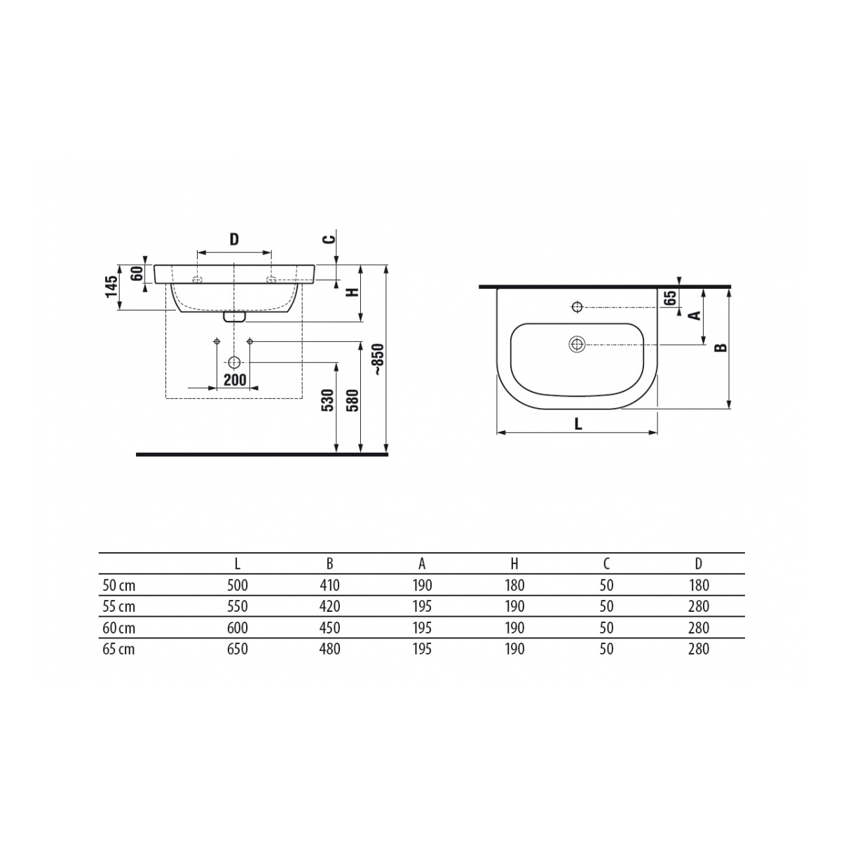 Umyvadlo Deep 55x42 cm, s otvorem, bílé, na stěnu, s přepadem, JIKA, H8126120001041