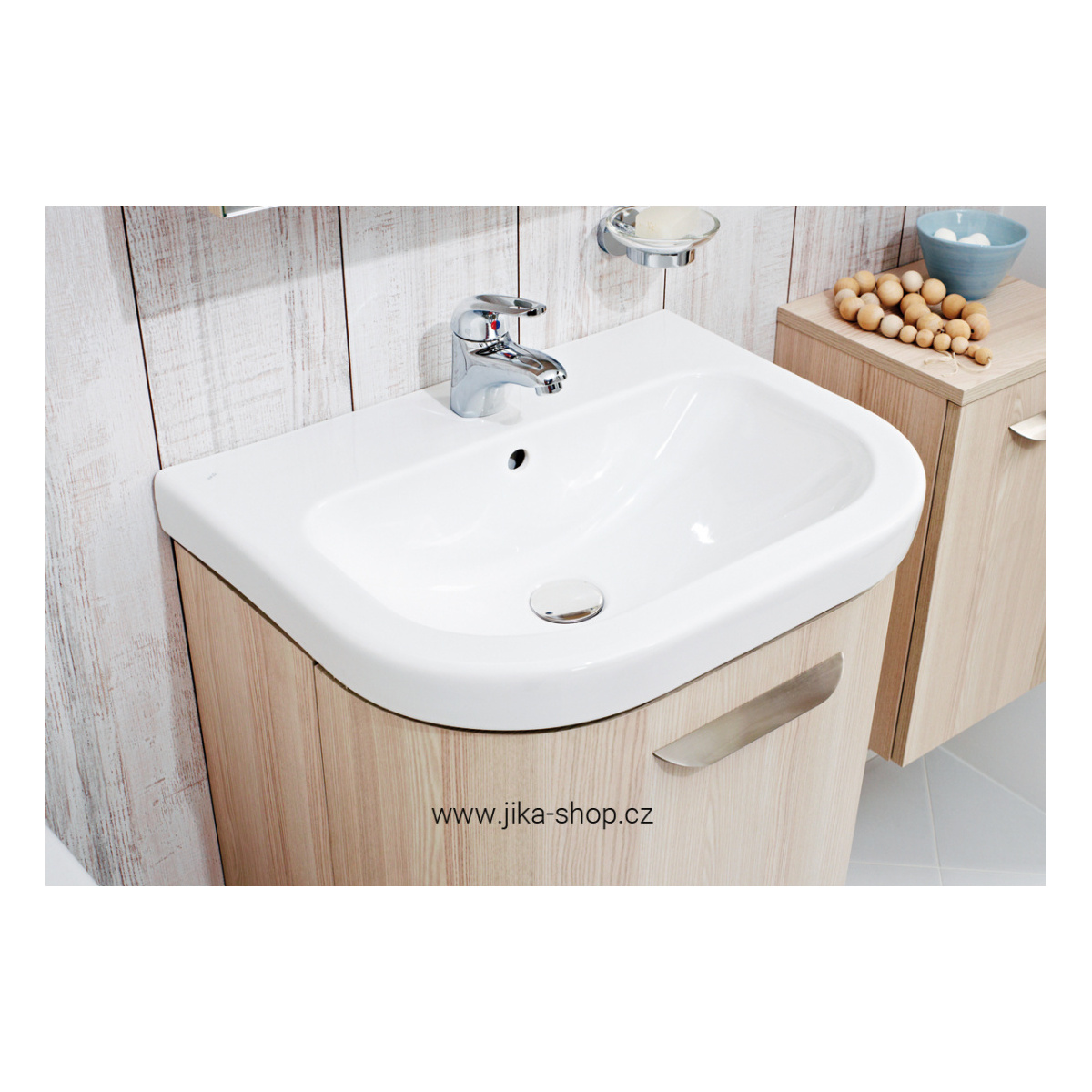 Deep by JIKA. Umyvadlo této série má krásný a čistý tvar, je prostorné díky odkládacím plochám i šířce, dostatečně hluboké, je chytře a přitom jednoduše řešené. Může se kombinovat se sifonem, keramickým krytem na sifon nebo originálním nábytkem.