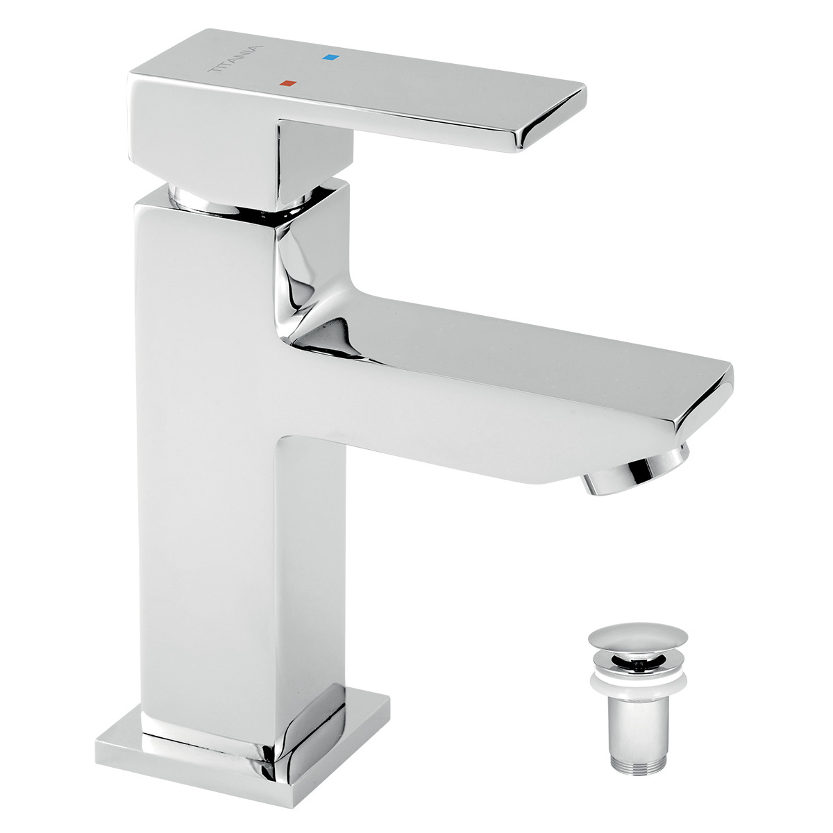 Umyvadlová baterie Titania Cube, chrom, stojánková, s výpustí, Novaservis 98803,0