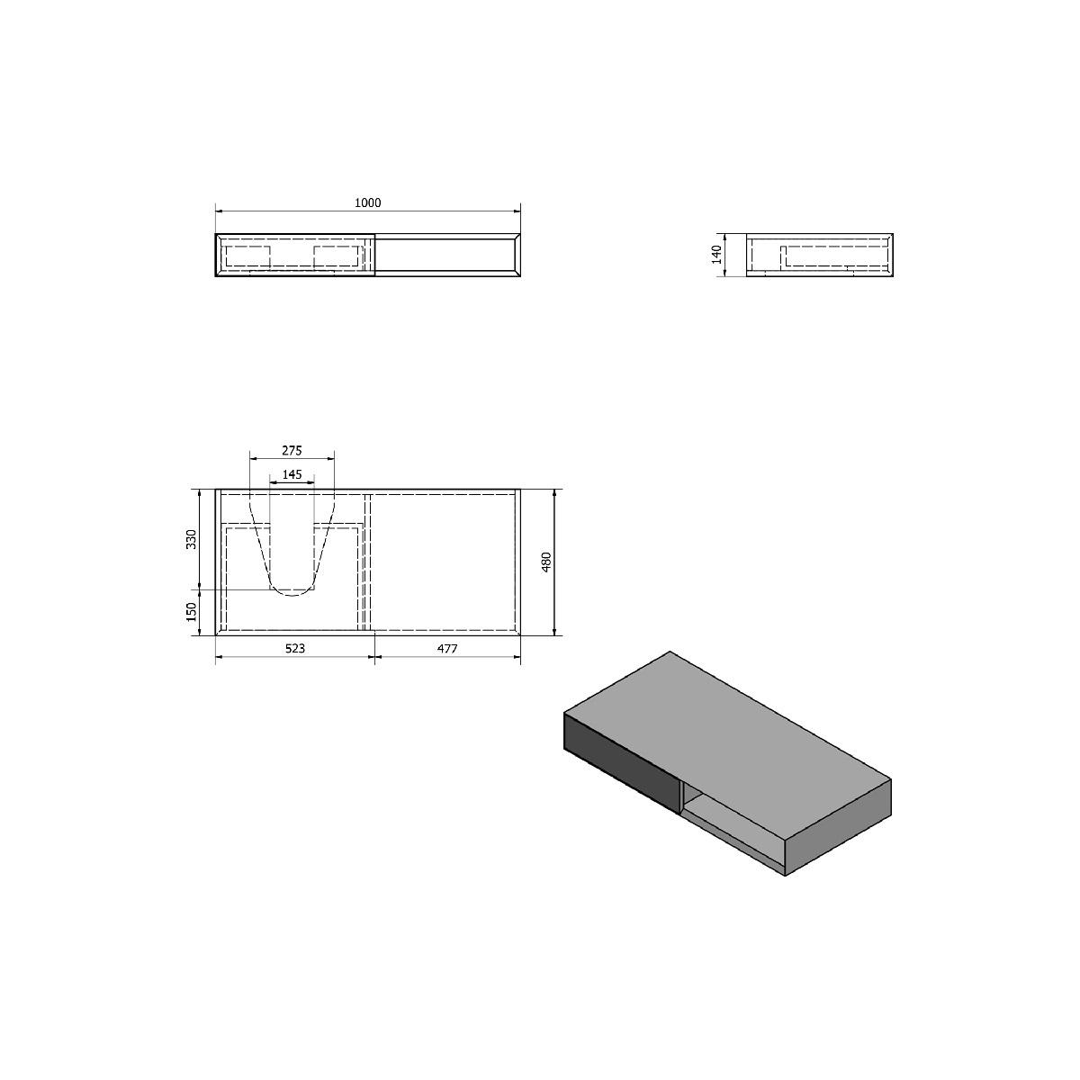 Umyvadlová skříňka je bez otvoru pro sifon a baterii v pracovní desce, nutno vyvrtat.