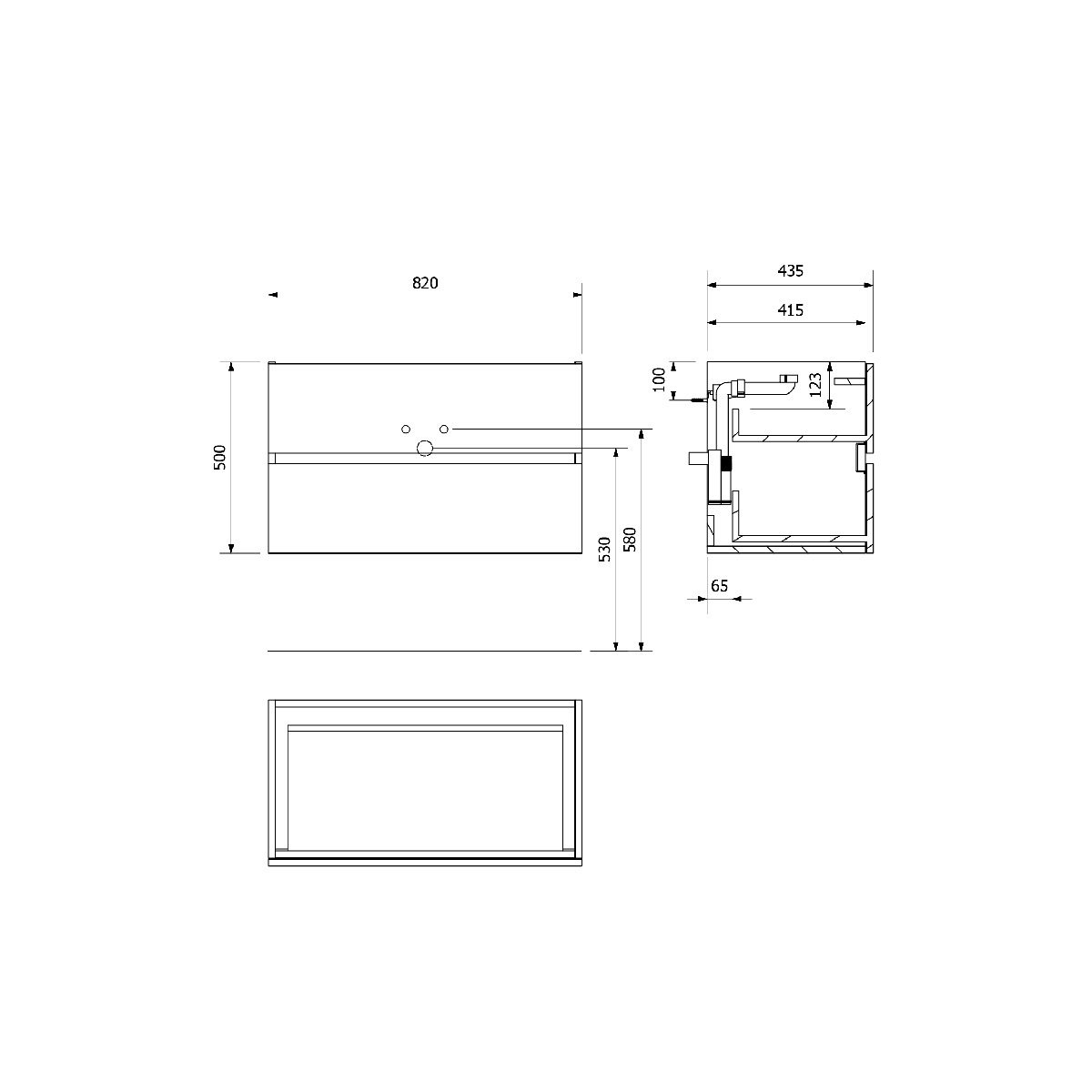 Horní zásuvka bez výřezu pro sifon (sifon nutno dokoupit)