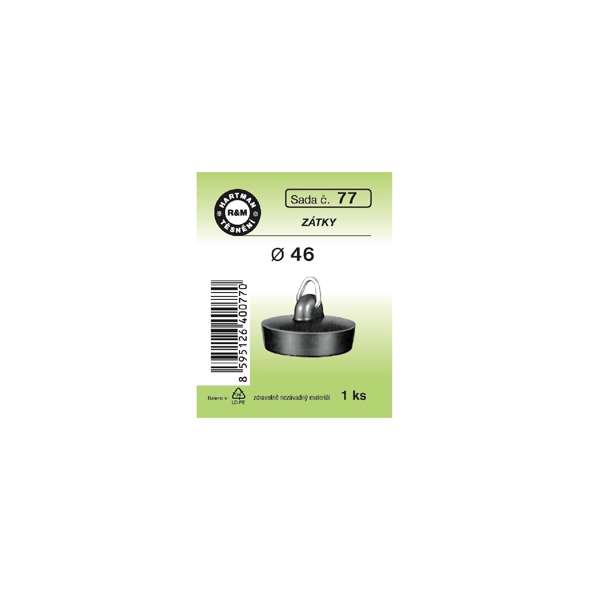 Umyvadlová zátka, průměr 46 mm, pryžové, 1 ks, č. 77, HARTMAN