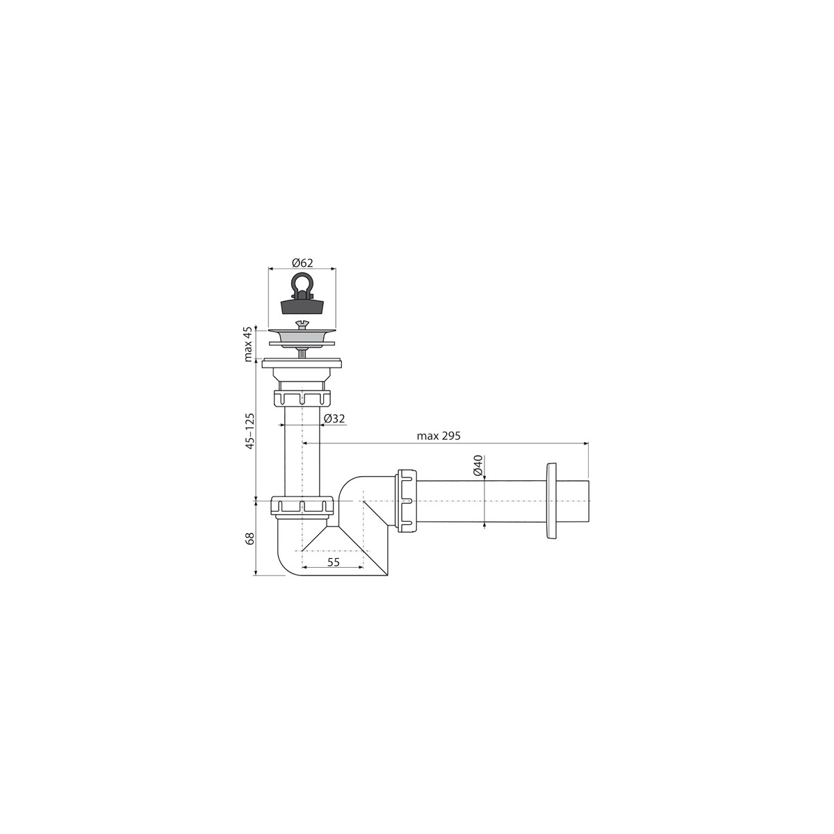 Umyvadlový sifon A412 s výpustí 63 mm, odpad 40 mm, Alcadrain A412-DN40