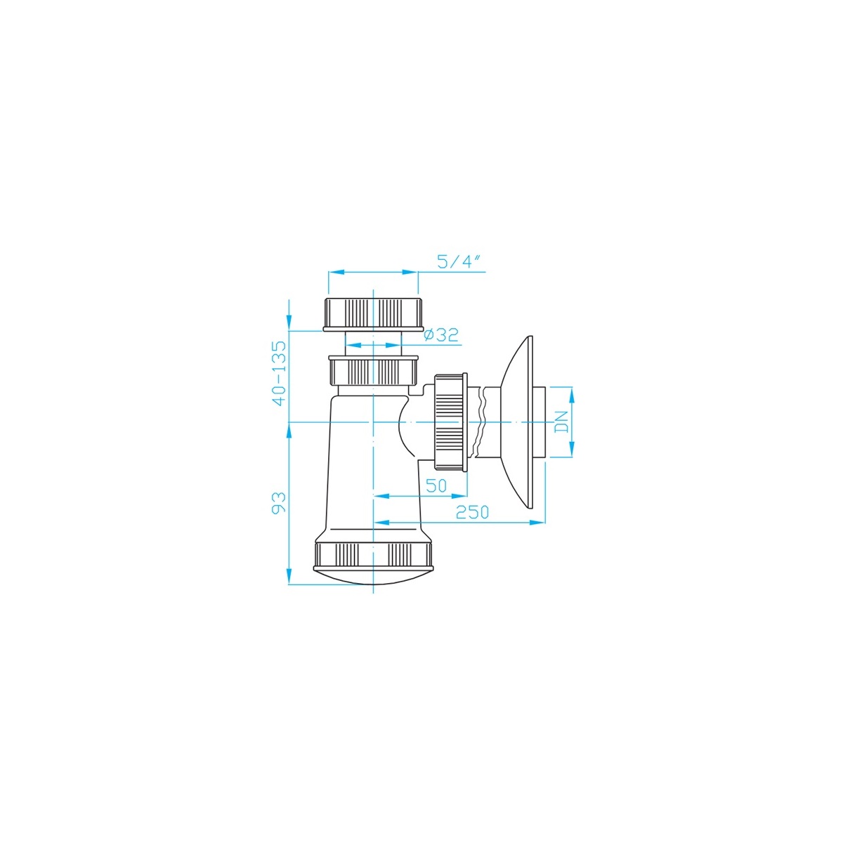 Umyvadlový sifon bez výpusti G 5/4", odpad 40 mm, Plast Brno EM05340