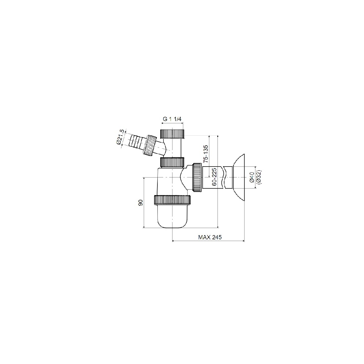 Umyvadlový sifon P-958/I bez výpusti G 5/4", odpad 40/32 mm, s přípojkou, Slovarm 620786