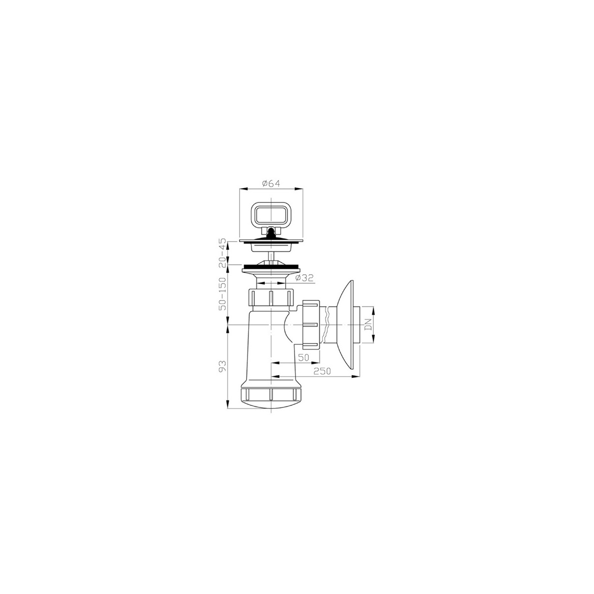 Umyvadlový sifon s výpustí 64 mm, odpad 40 mm, Plast Brno EU0N341