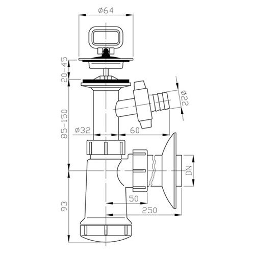 Umyvadlový sifon s výpustí 64 mm, odpad 40 mm, s přpojkou, Plast Brno EU1N341