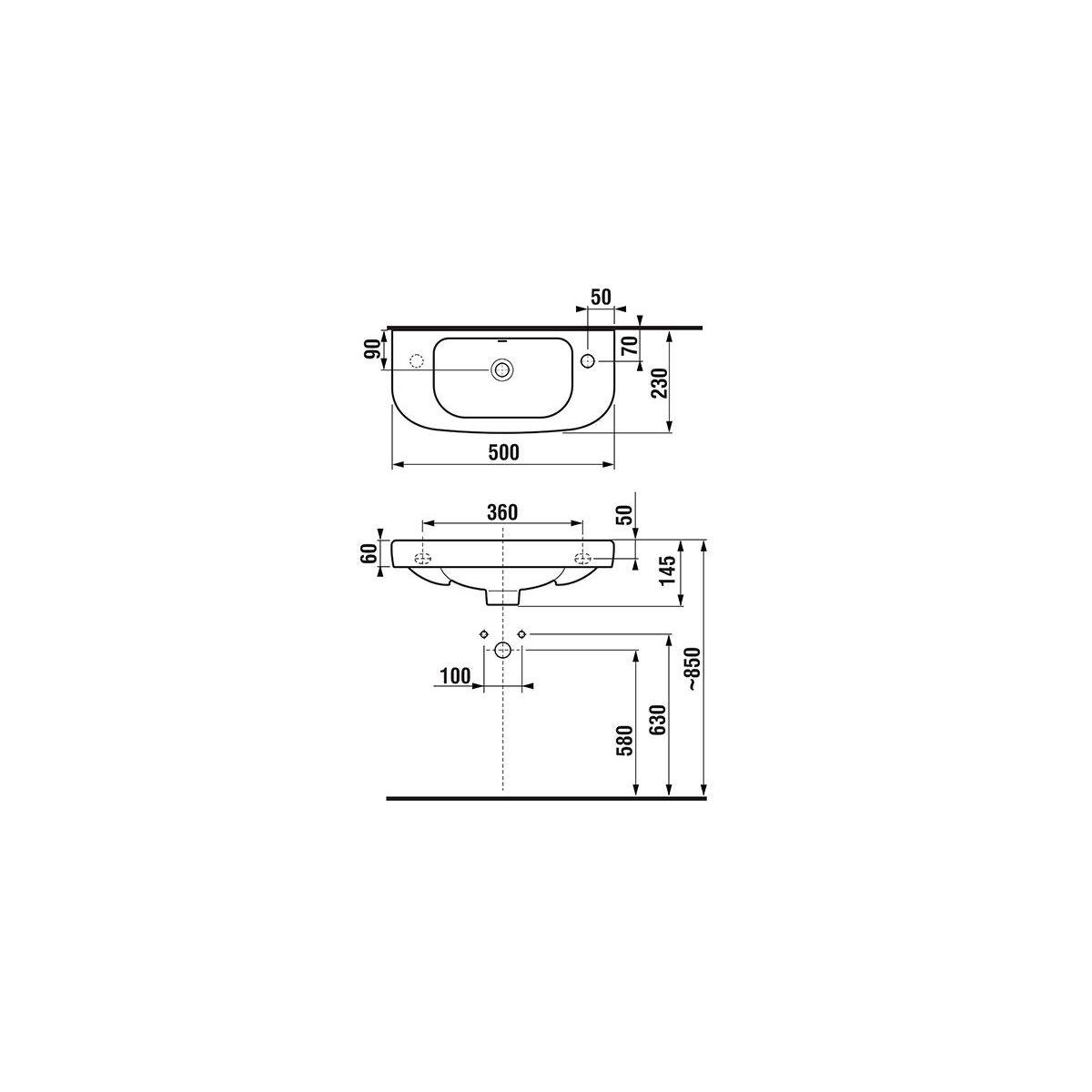 Umyvátko Deep 50x23 cm, s otvorem vpravo, bílé, na stěnu, s přepadem, JIKA, H8156150001061