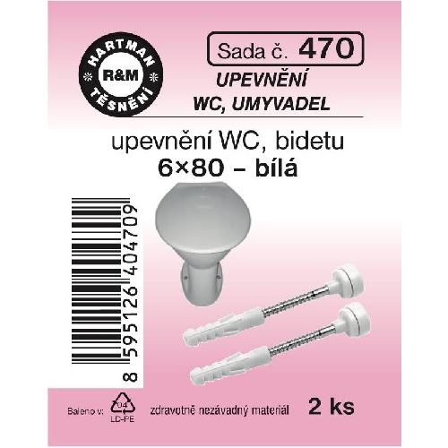Upevnění WC a bidetu, 6 x 80, 2 ks č. 470, HARTMAN