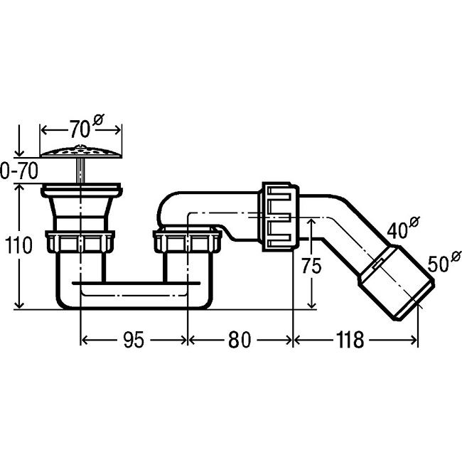 Vaničkový sifon 70, odpad 40/50 mm, Viega 312121
