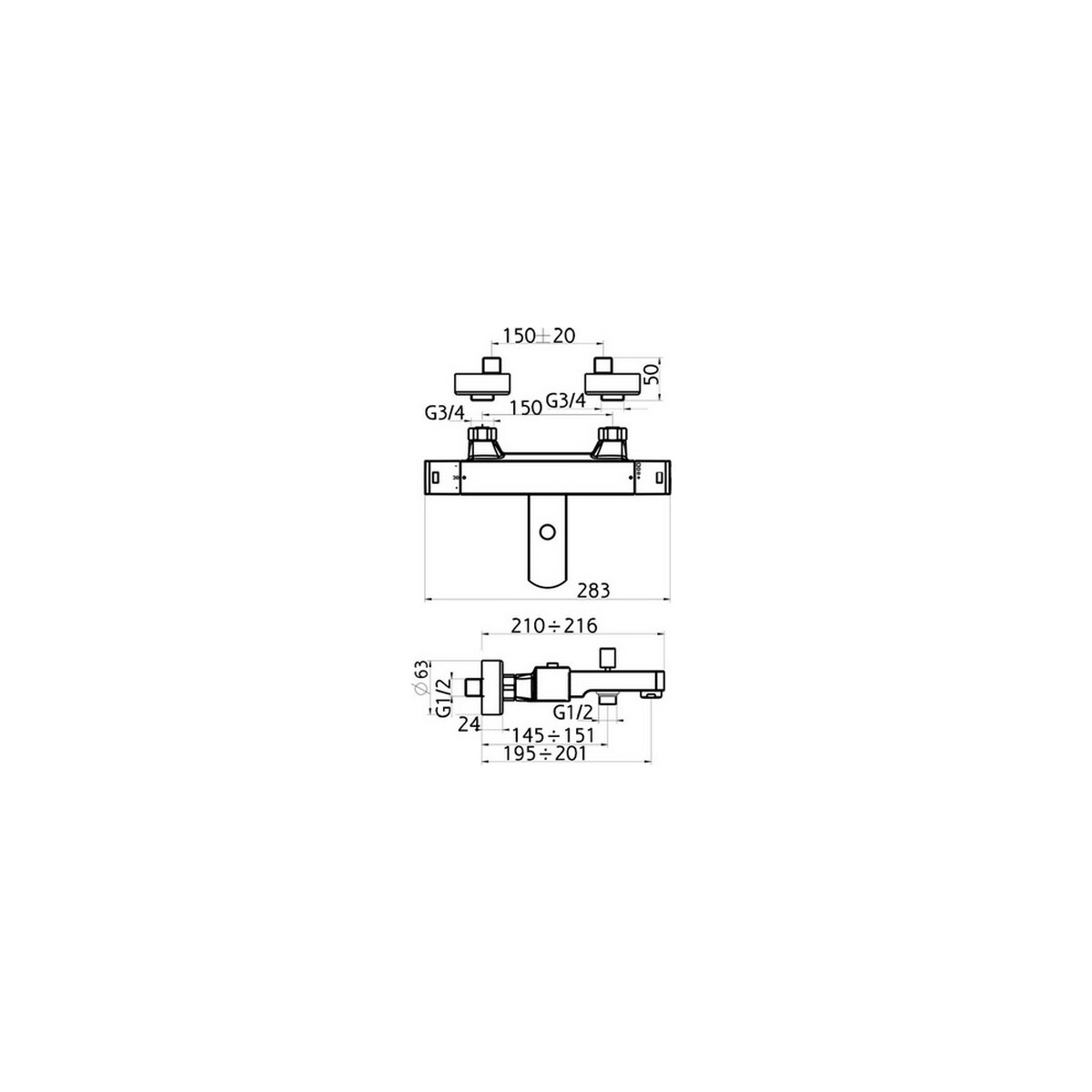 Vanová baterie Aquasave 150 mm, chrom, nástěnná, termostatická, bez příslušenství, Novaservis 2820/1,0