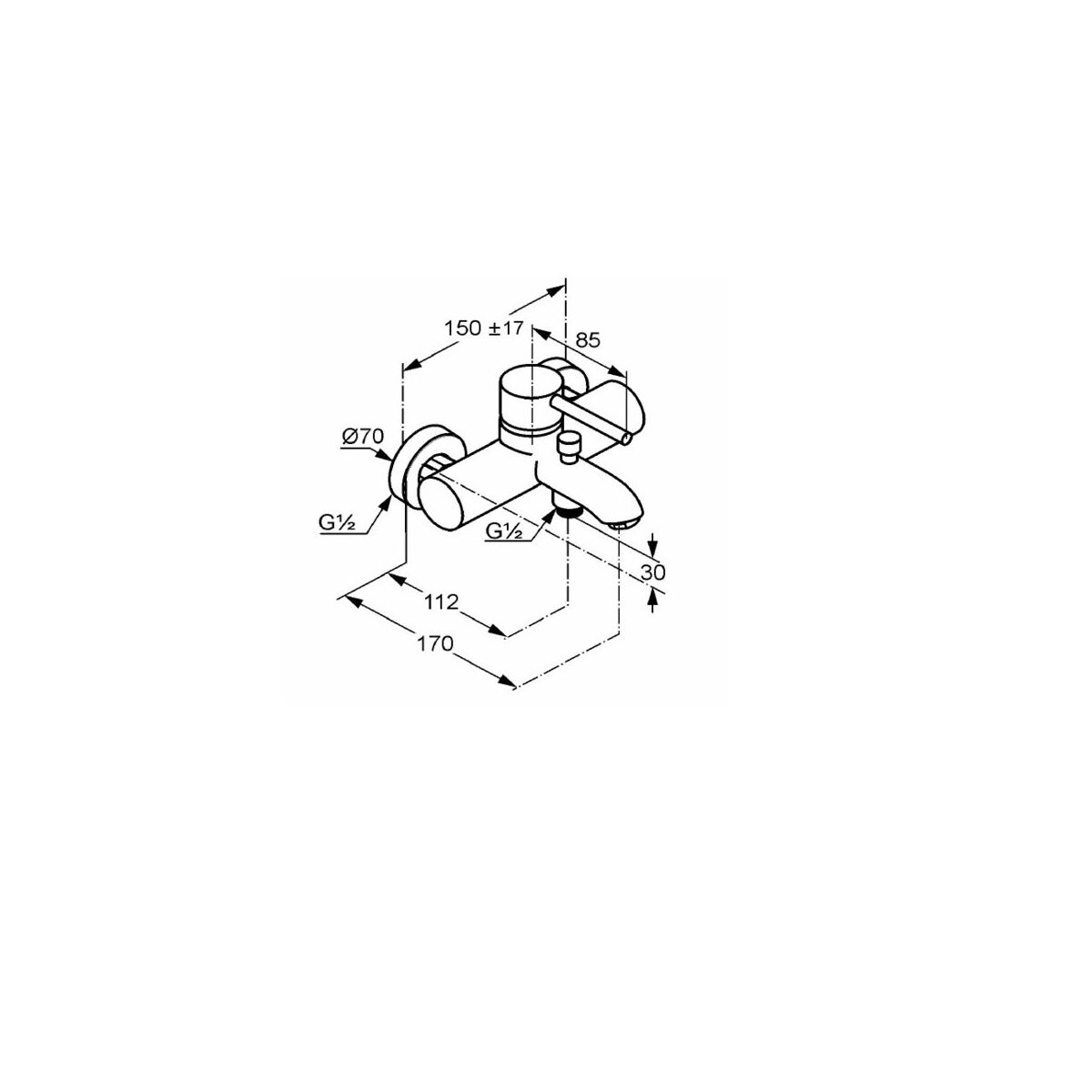 Vanová baterie Bozz 150 mm, chrom, nástěnná, bez příslušenství, Kludi 386910576