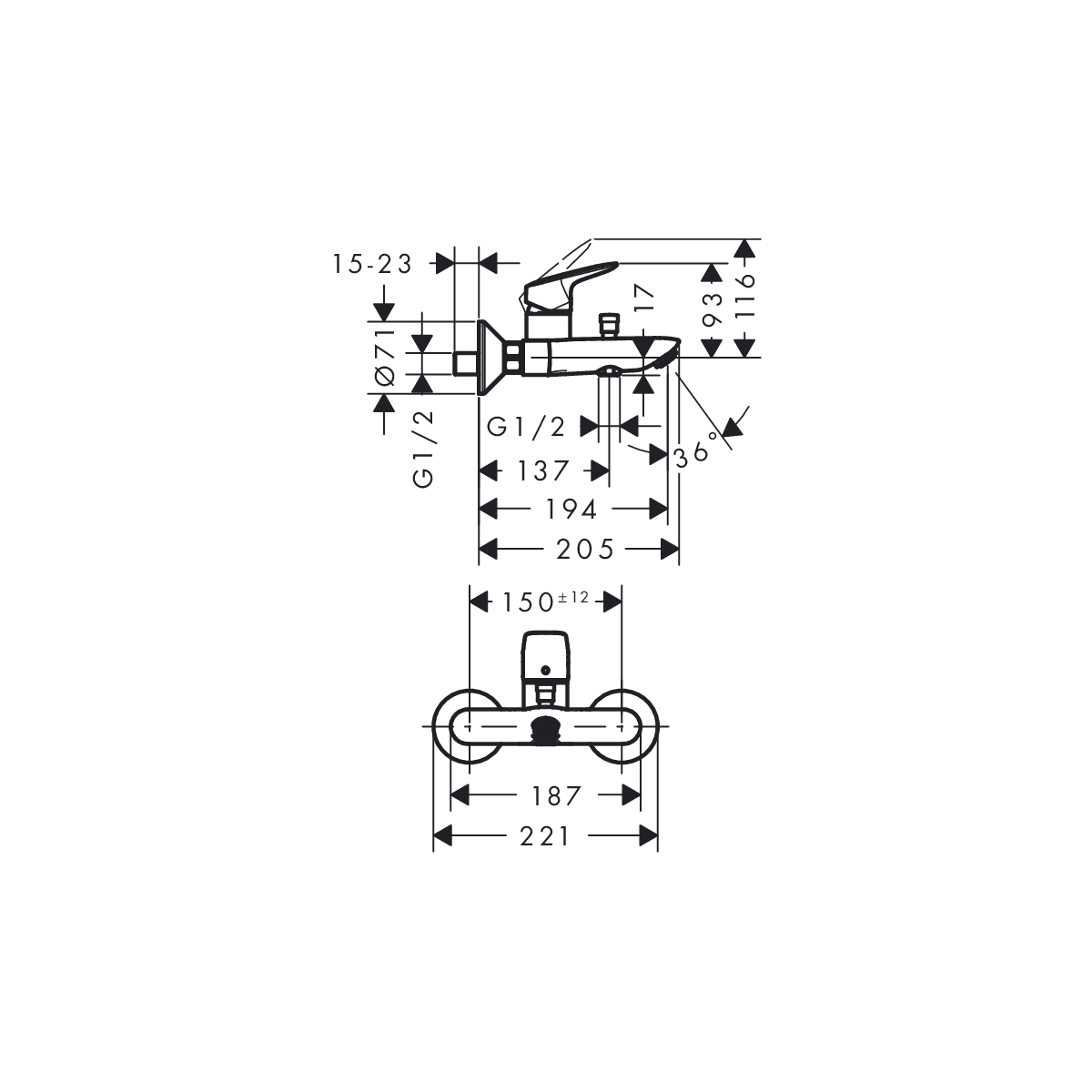 Vanová baterie Logis 150 mm, chrom, nástěnná, bez příslušenství, Hansgrohe 71400000