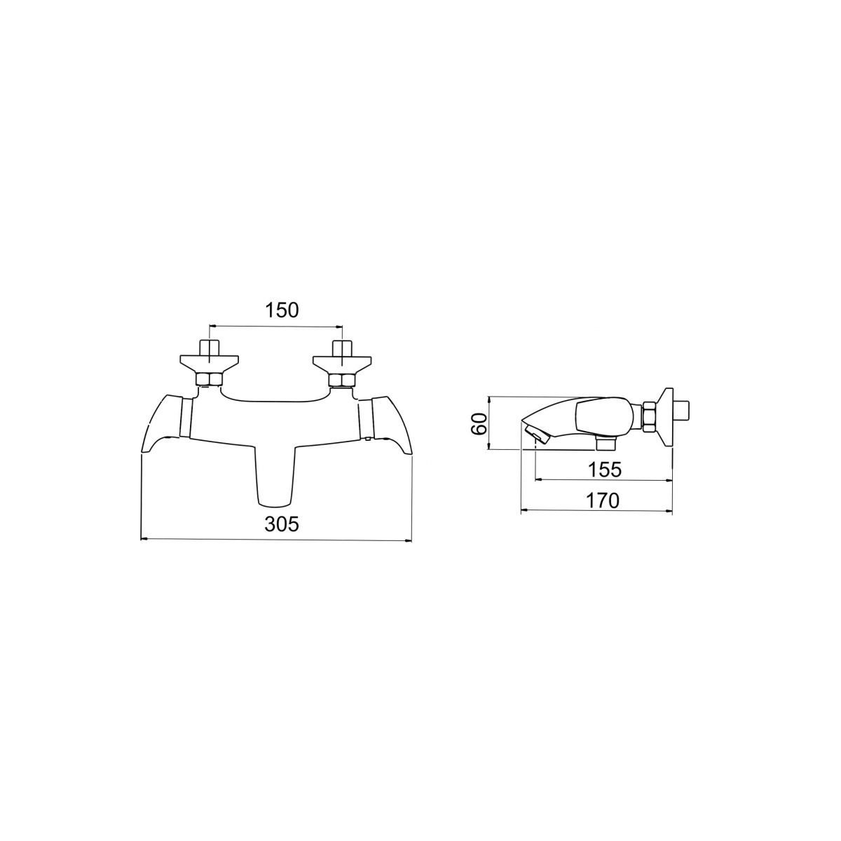 Kvalitní a odolná termostatická kartuše KEROX . Prvotřídní chromové provedení. Vanová termostatická baterie s roztečí 150 mm a přepínačem na levé rukojeti.