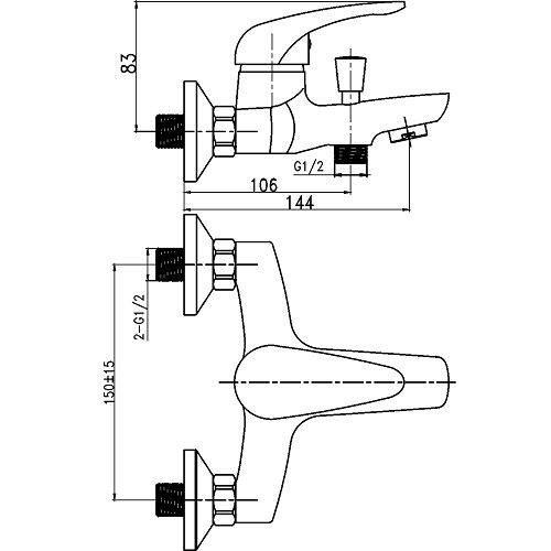Vanová baterie Titania Hit 150 mm, chrom, nástěnná, bez příslušenství, Novaservis 95520/1,0