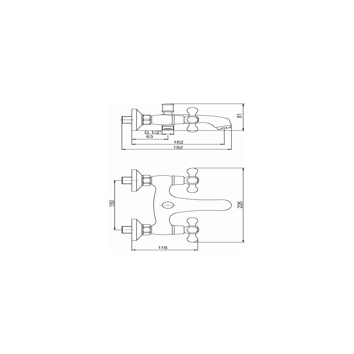 Vanová baterie Titania Retro II 150 mm, chrom, nástěnná, bez příslušenství, Novaservis 99120/1,0