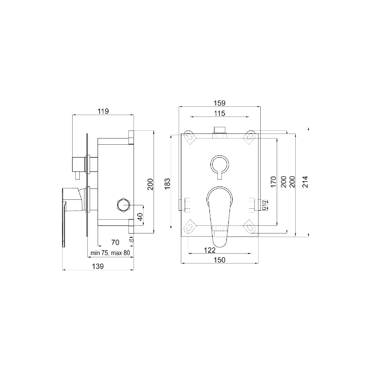 Vanová baterie Titania Smart, chrom, podomítková, bez příslušenství, Novaservis BOX98051R,0