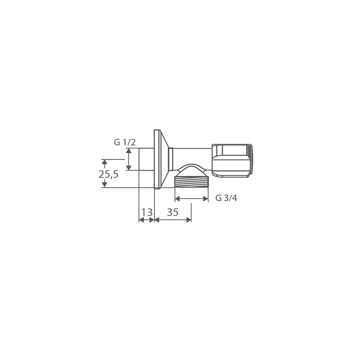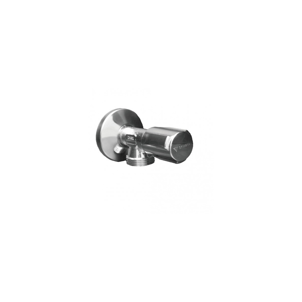 Rohový ventil pro připojení koncových zařízení k vodovodním rozvodům. Ventil je osazen rukojetí COMFORT a posuvnou rozetou průměr 54 mm,