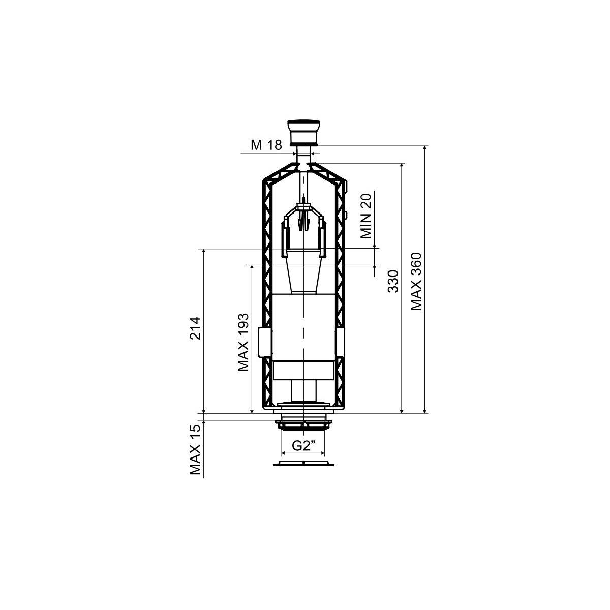 Ventil se používá pro vypuštění vody ze splachovacích nádržek. Průměr spodního závitu 2". START - STOP systém splachování.