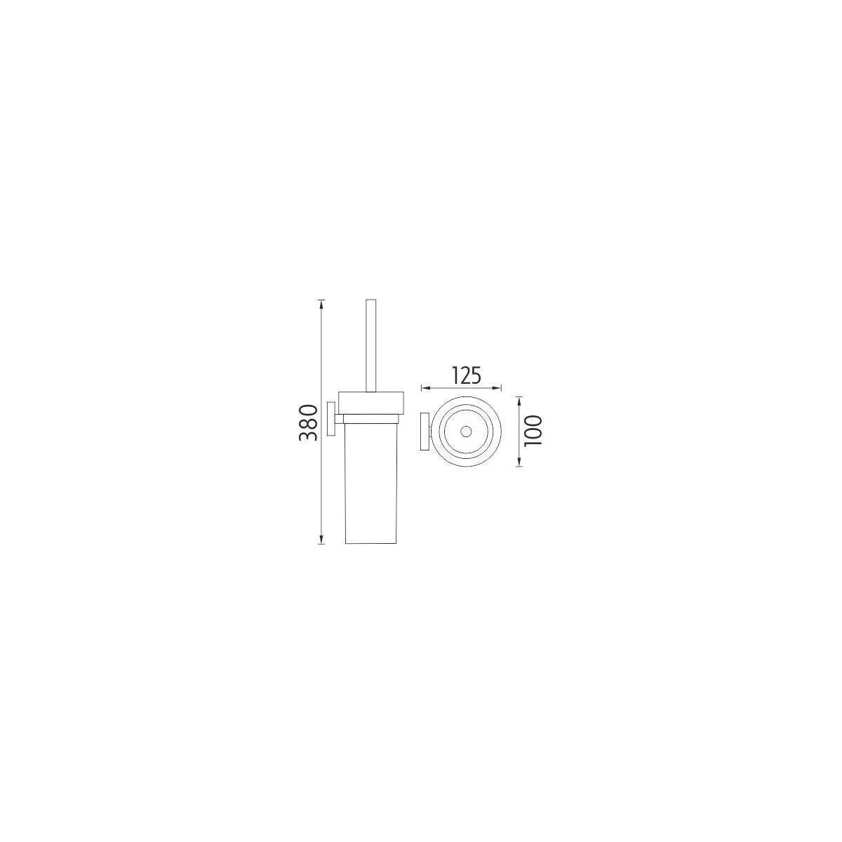 Toaletní WC kartáč s nádobkou z matovaného skla. Rukojeť kartáče z mosazi s povrch. úpravou chrom.