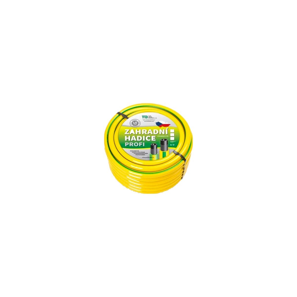 Vysoce odolná zahradní hadice s černou vnitřní vrstvou a vnějším pláštěm v barevné kombinaci žluté se zeleným podélným pruhem. Vyztužená vysokopevnostním PES vláknem. Svou konstrukcí je určená pro všeobecné použití. Vzhledem k vyšší tloušťce stěny má výborné mechanické vlastnosti - odolná proti deformaci. Neprůhledná vnitřní vrstva zabraňuje tvorbě řas.