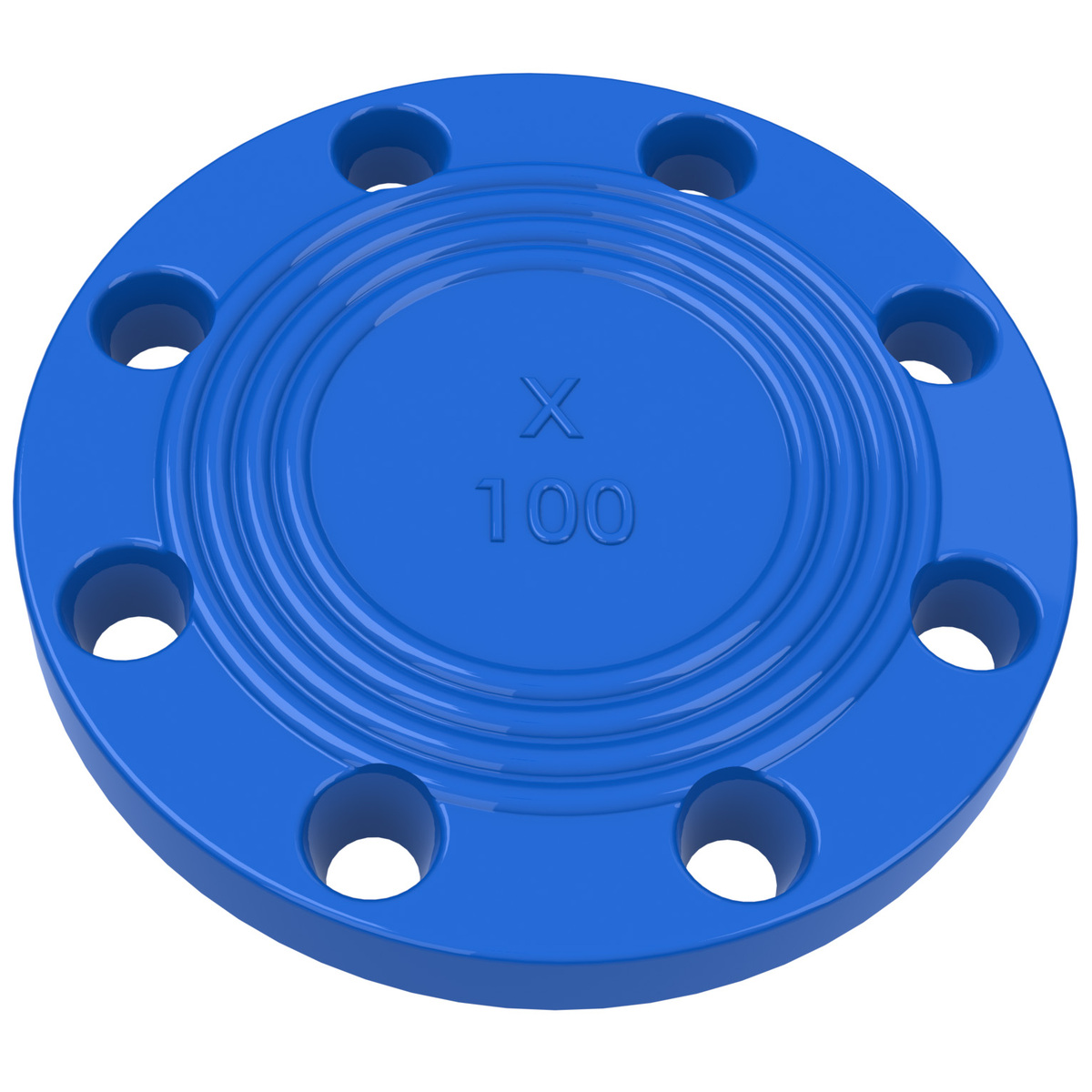 Zaslepovací X příruba se používá do potrubních systémů k zaslepení přírubových konců potrubí. Je určená pro trvalý styk s pitnou, surovou a neagresivní odpadní vodou. Povrchová úprava X příruby je zdravotně nezávadná a proto jsou příruby vhodné i do potrubí s pitnou vodu. Epoxidový nátěr modré barvy o minimální střední tloušťce 200 µm. Přruba je vyrobená z šedé litiny GG (EN-GJL). Kruhové drážky se montují směrem k těsnění.