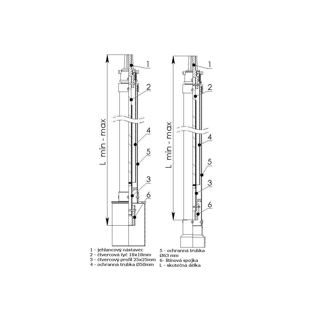 Jednoduché nastavení potřebné délky zemní soupravy pro požadovanou krycí (zákopovou) hloubku dle nively terénu.